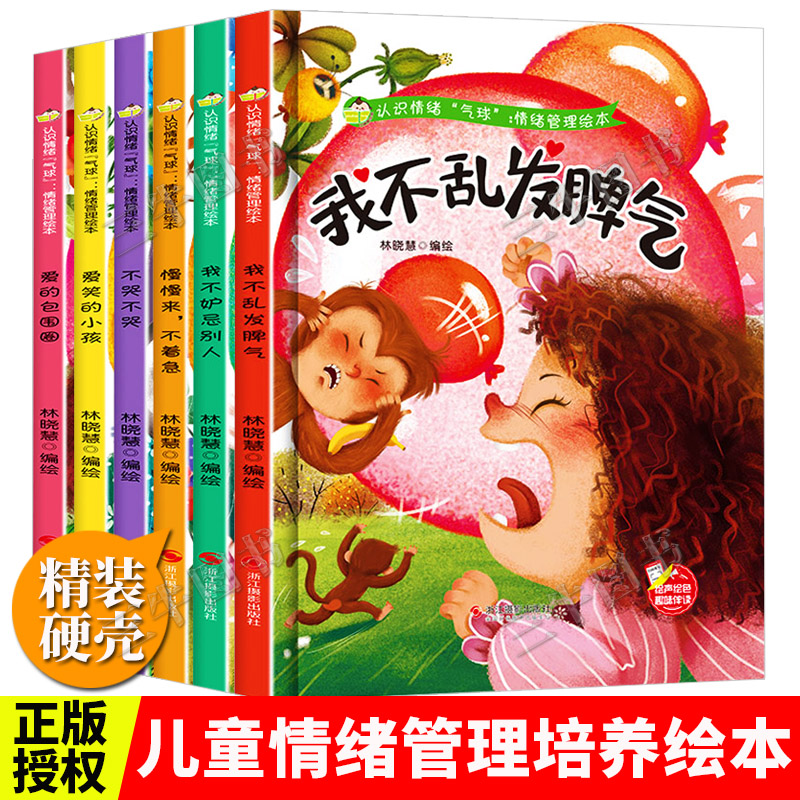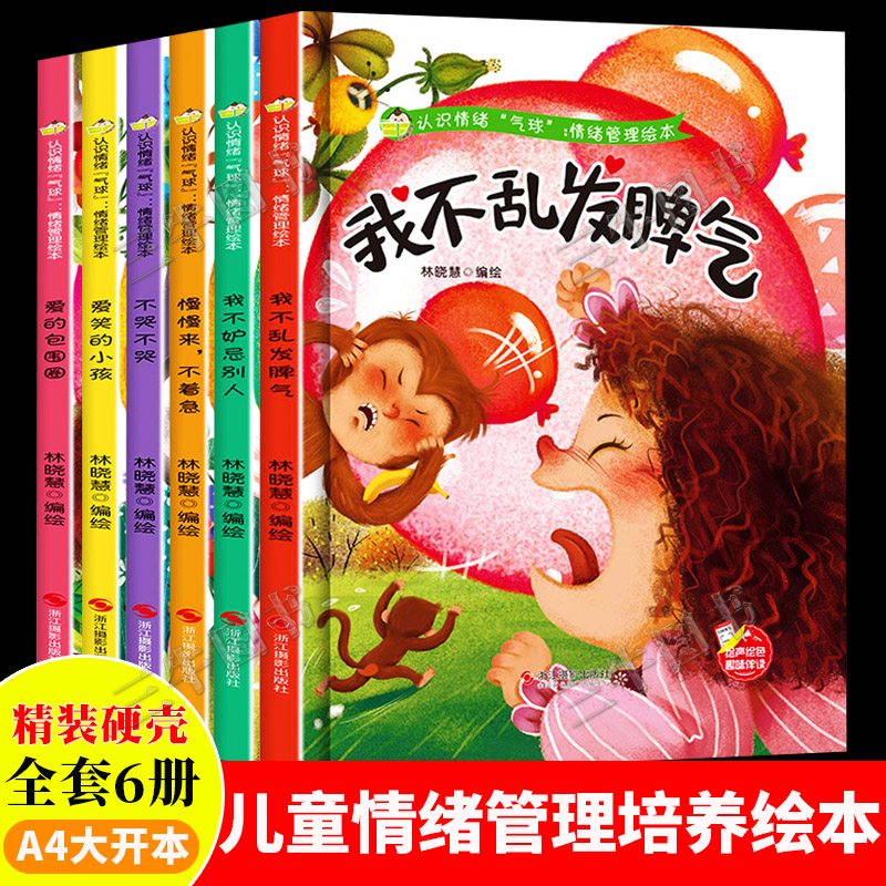 认识情绪气球儿童情绪管理与性格培养绘本全套6册A4精装 6岁幼儿不哭不哭我不乱发脾气 硬皮硬壳绘本幼儿园阅读小班中班大班故事书3