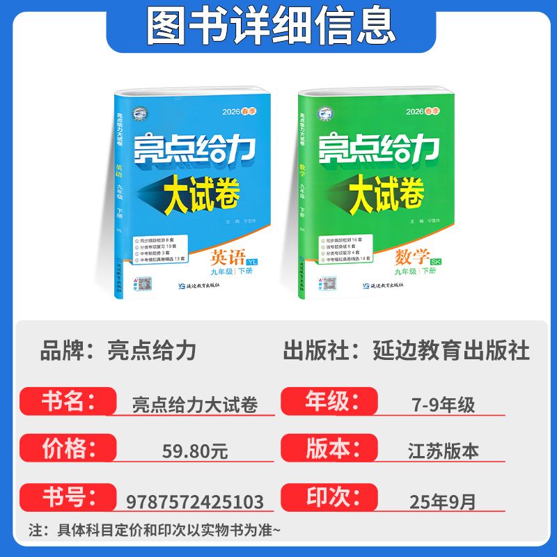 期中各地期末试卷精选江苏版 英语七八九年级上下册中学教辅同步训练习册单元 专题复习资料 数学 2026春初中亮点给力大试卷语文