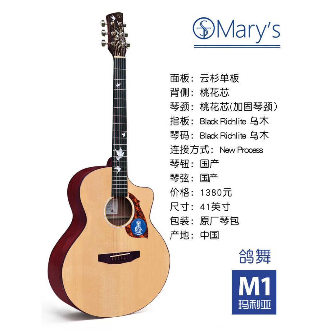 玛利亚M1吉他民谣吉他云杉桃花芯 初级入门面单全单木吉他电箱