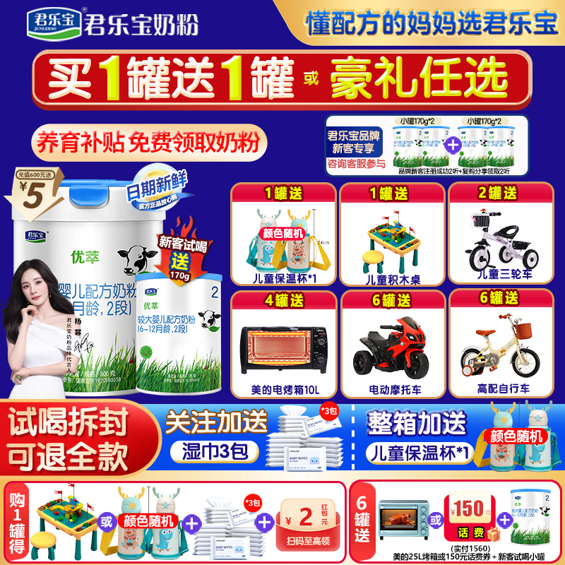 新客送试喝 12个月婴幼儿配方有机奶粉二段800g 君乐宝优萃2段6