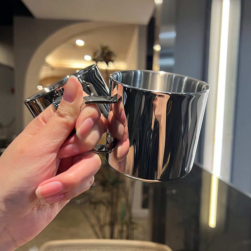 10不锈钢纯厚重 钢制艺术双层咖啡杯 滞留福利单 几bai个出
