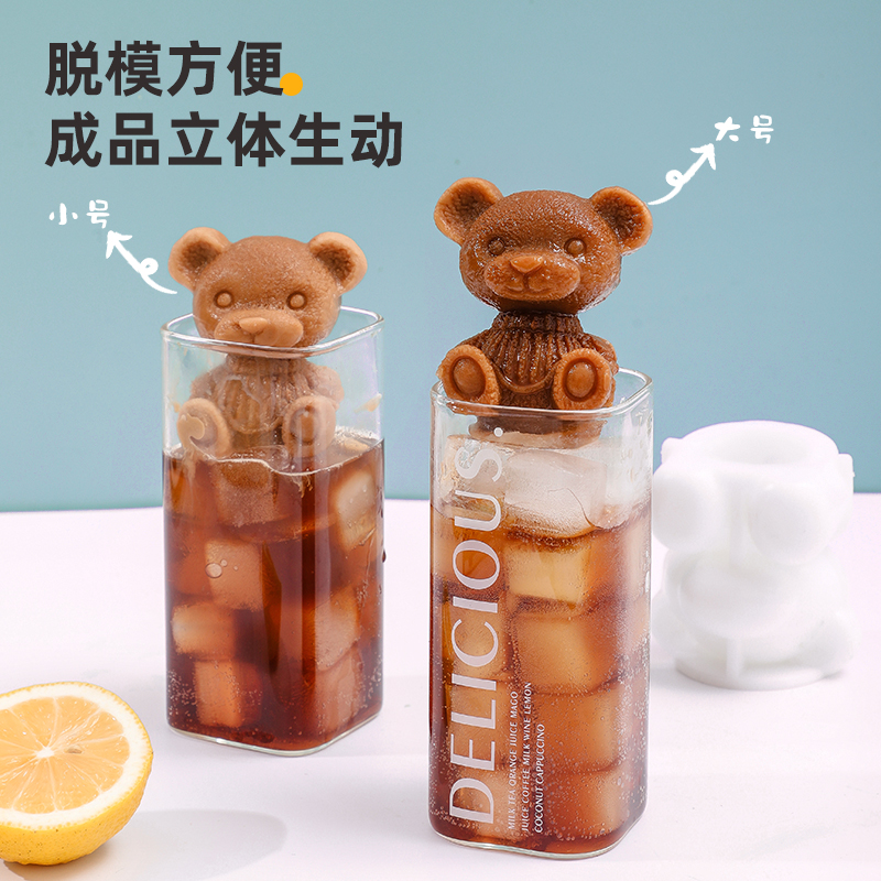 网红小熊冰块模具小块食品级硅胶冰格大块制冰儿童雪糕冰淇淋模具
