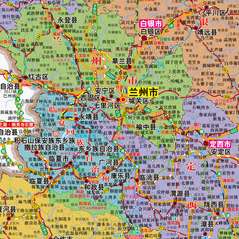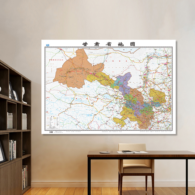 甘肃省地图2023年全新版 大尺寸长106厘米高76厘米墙贴防水高清政区交通旅游参考地图