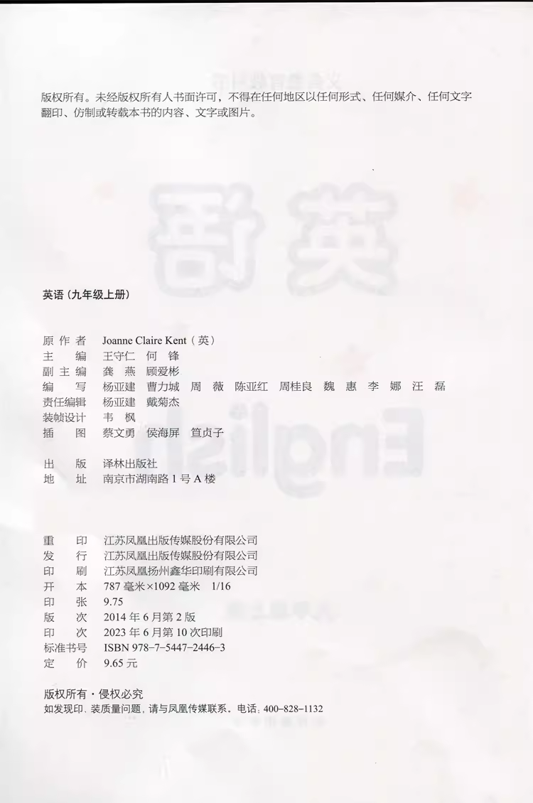 江苏学生适用 初三九年级英语教科书课本 含课外推荐 阅读简爱水浒传儒林外史唐诗三百首译林出版 英语课本 社官方正版 9年级上册