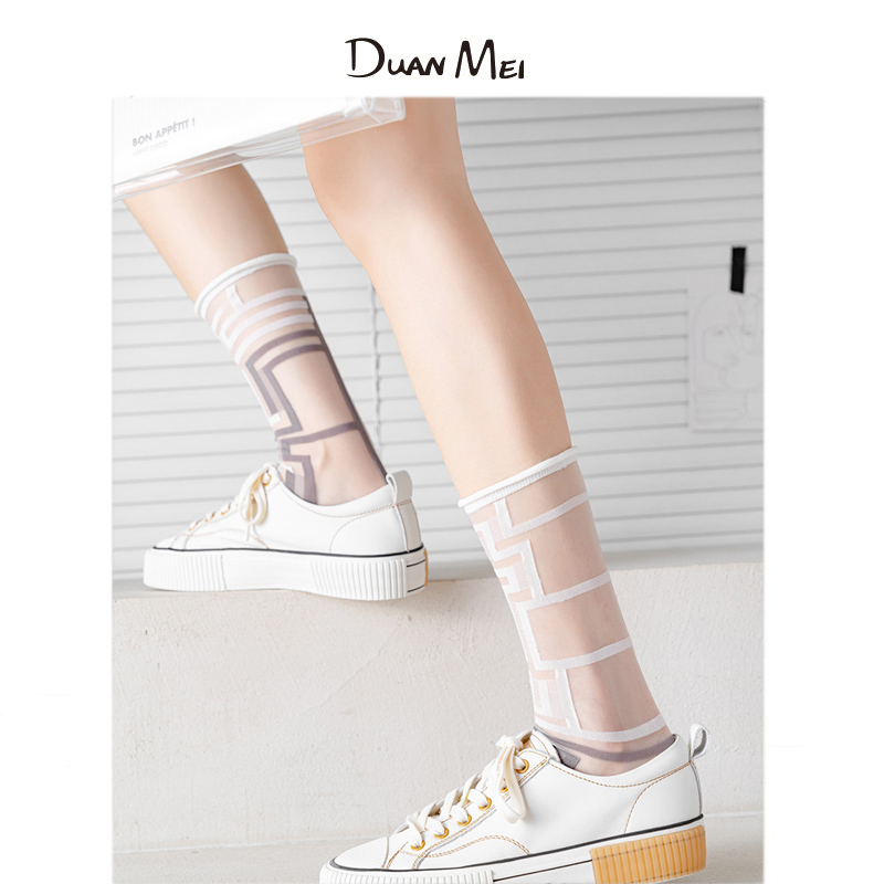 法国艺术玻璃丝袜水晶丝袜子女中筒袜夏季 ins潮透明袜子丝袜 薄款