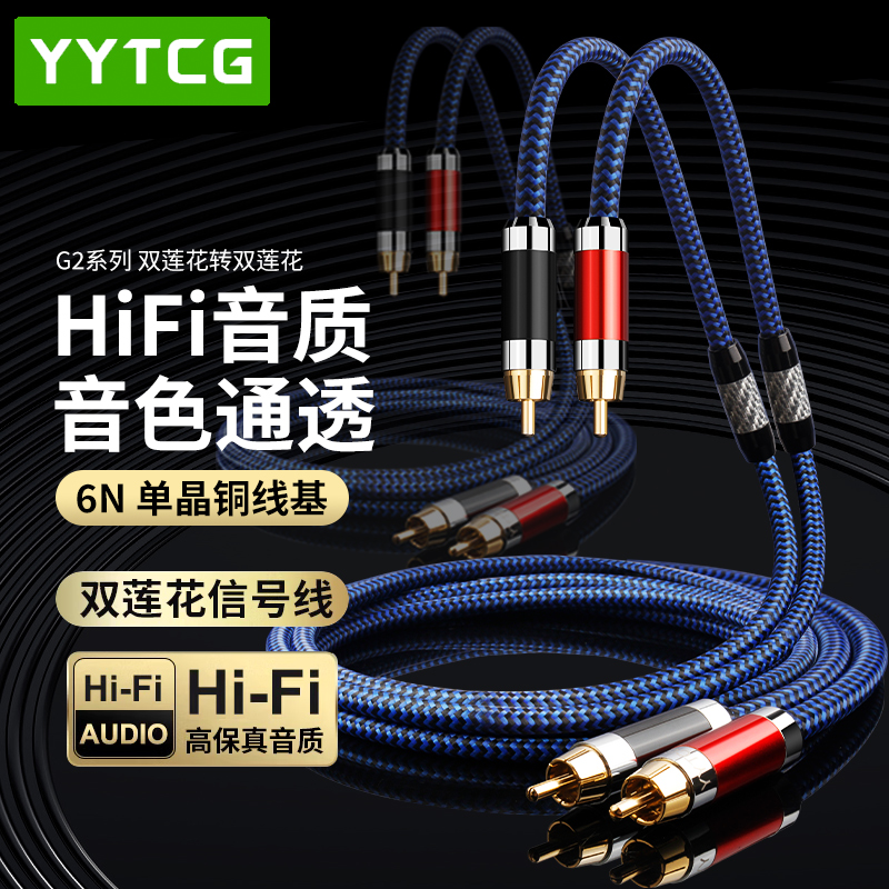 发烧级莲花头音频线降噪二对二信号线2rca红白梅花插头输出线转换电视机DVD接音响音箱功放低音炮专用连接线
