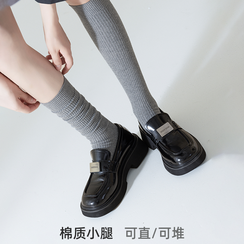 堆堆长筒袜配小皮鞋 灰色压力小腿袜女夏季 纯棉显瘦中筒袜春秋款