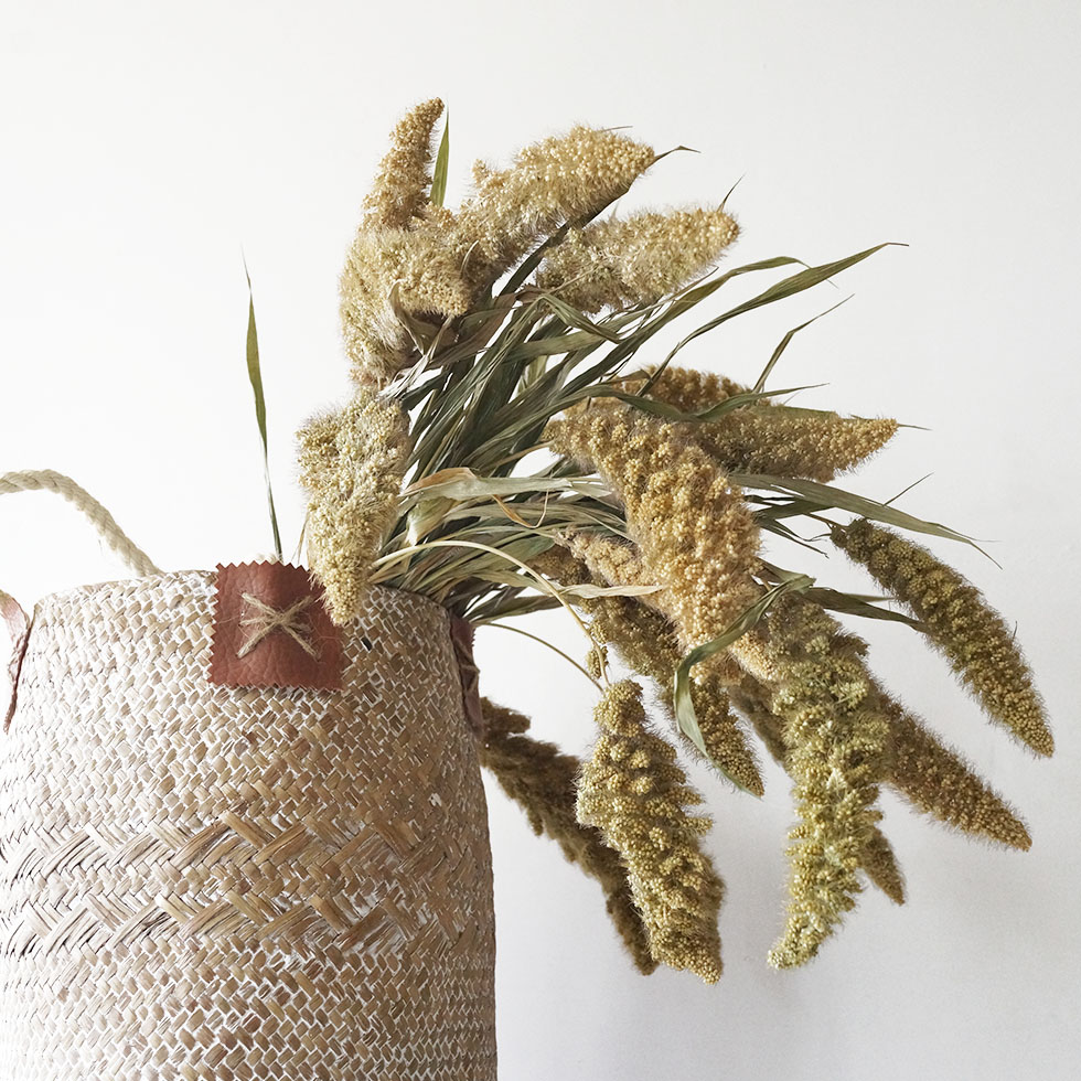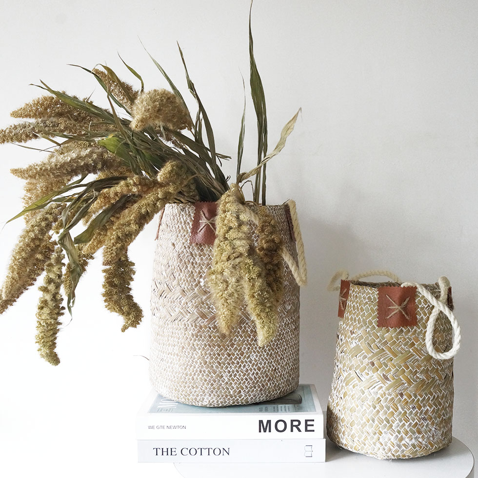 天然干花束编花篮海草篮 饰摆件客厅拍摄道具 熊尾穗干花家居装