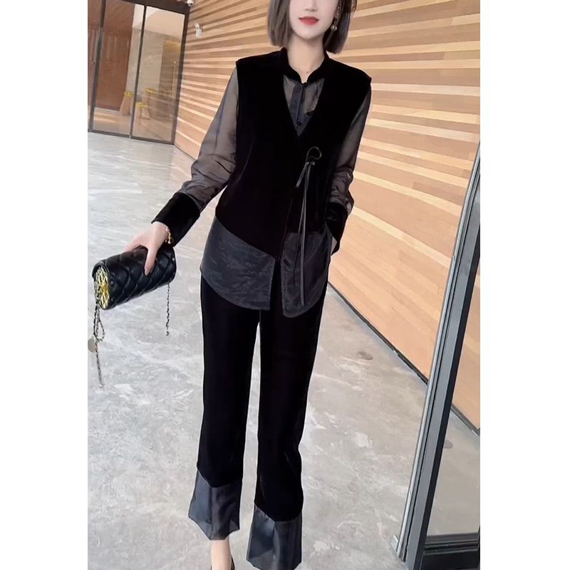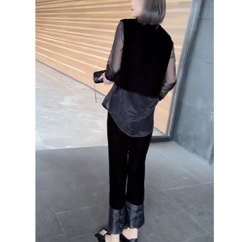 新款 盘扣假两件衬衣裤 国风时尚 女新中式 子两件套 显瘦套装 2025秋季