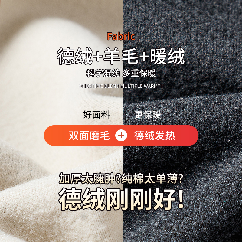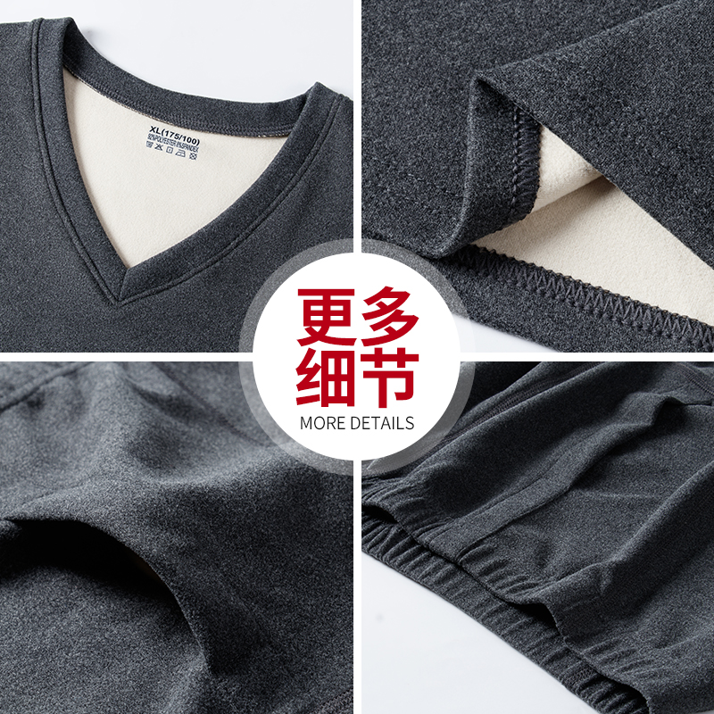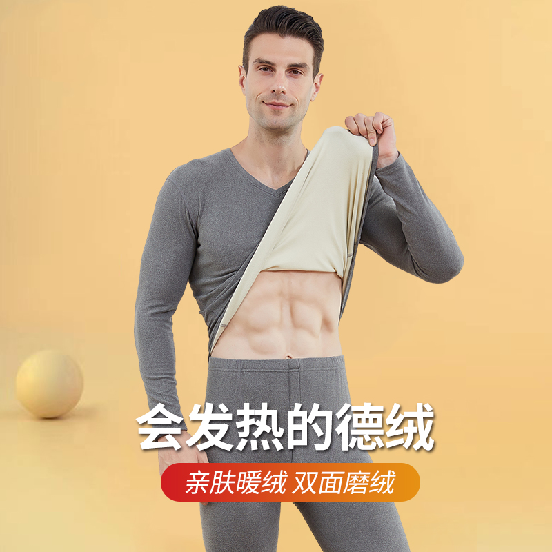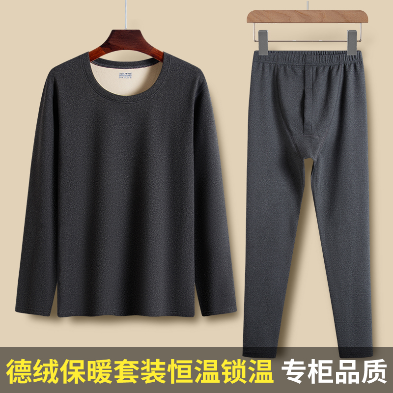 打底冬季 男秋衣秋裤 羊毛贴身 双面德绒自发热中年保暖内衣套装 男士