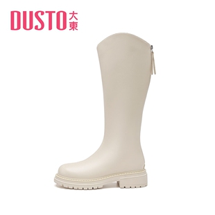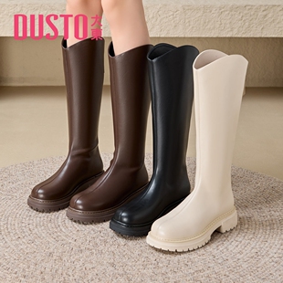 大东白色长筒靴女春秋2025新款 加绒女靴厚底小个子不过膝长靴 冬季
