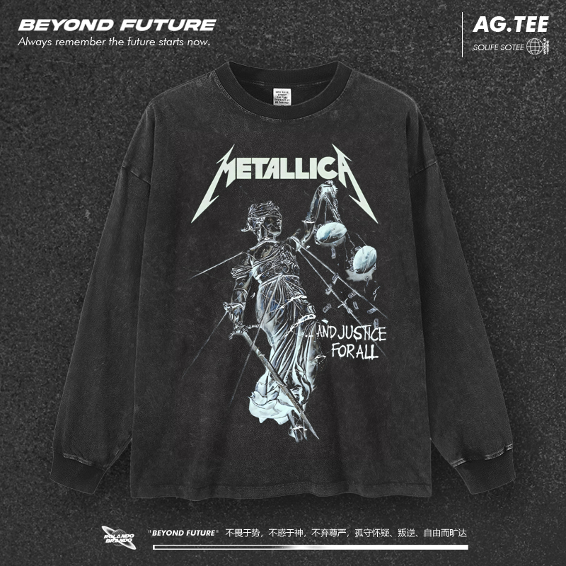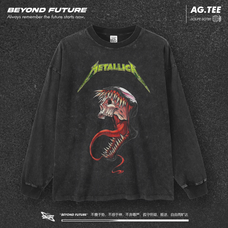 metallica美式 高街头不规则水洗摇滚上衣 做旧复古男女秋冬长袖