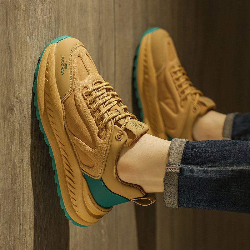 莆田阿甘男鞋 休闲运动厚底增高真皮防水跑步黑色老爹春秋透气 秋季