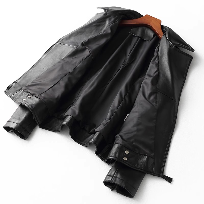 暗夜黑立领PU皮衣外套女MOFAN摩凡2025秋款 显瘦 酷飒风皮夹克短款