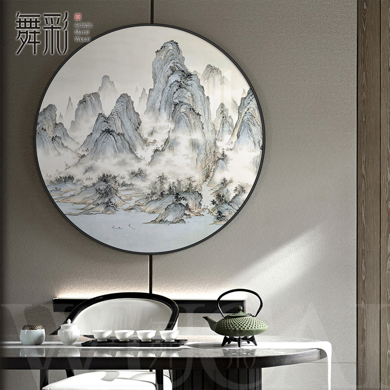 新中式 饰画客厅走廊圆形意境山水挂画茶室餐厅禅意壁画 入户玄关装