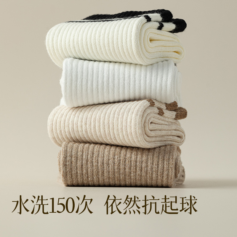 爆款 纯棉中筒袜2025新款 防臭抗菌美拉德条纹长袜女 秋冬季 袜子女款