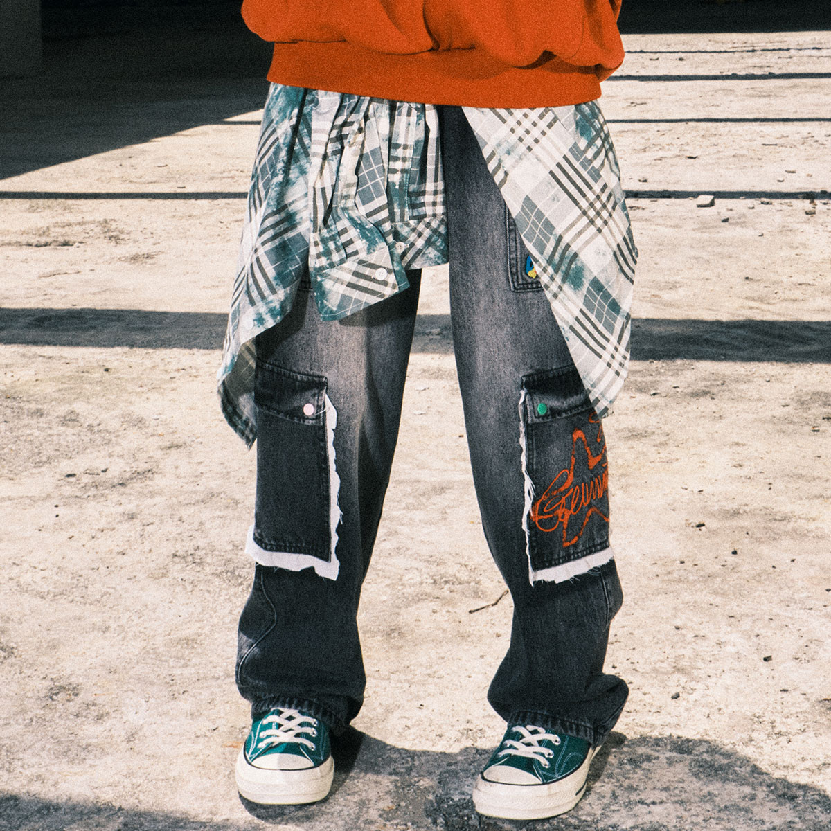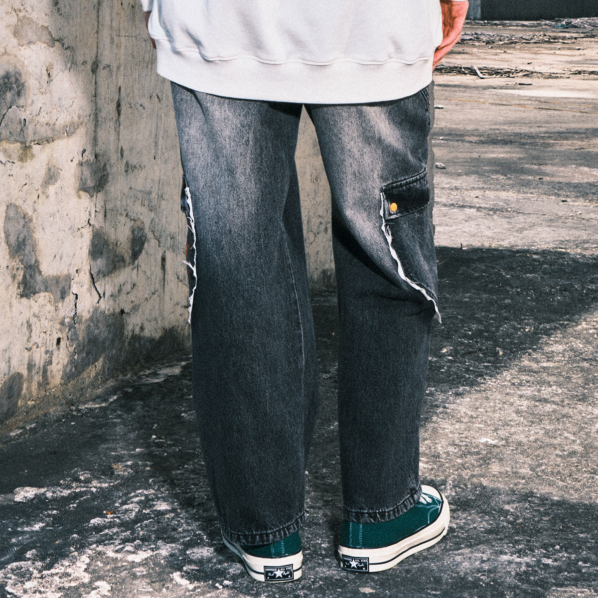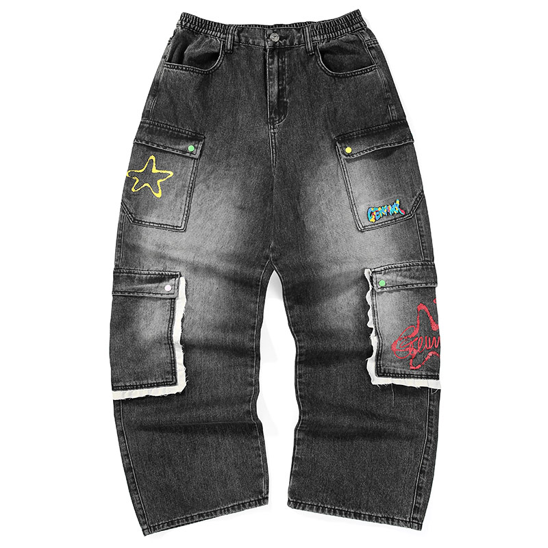 裤 三福2025冬季 街头潮酷直筒阔腿长裤 解构设计牛仔裤 子510091 男士