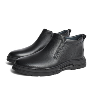 森达皮靴男秋冬经典 加绒保暖厚底黑皮靴1TE02DD4 切尔西靴商场同款