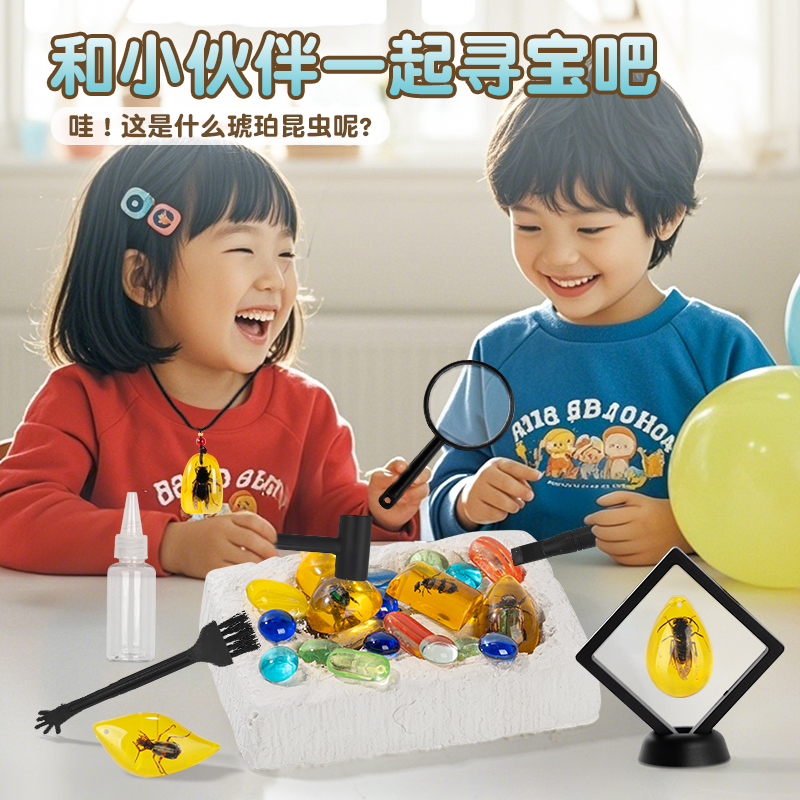 考古挖掘玩具琥珀昆虫标本挖矿石儿童手工diy男宝藏寻宝女孩套装