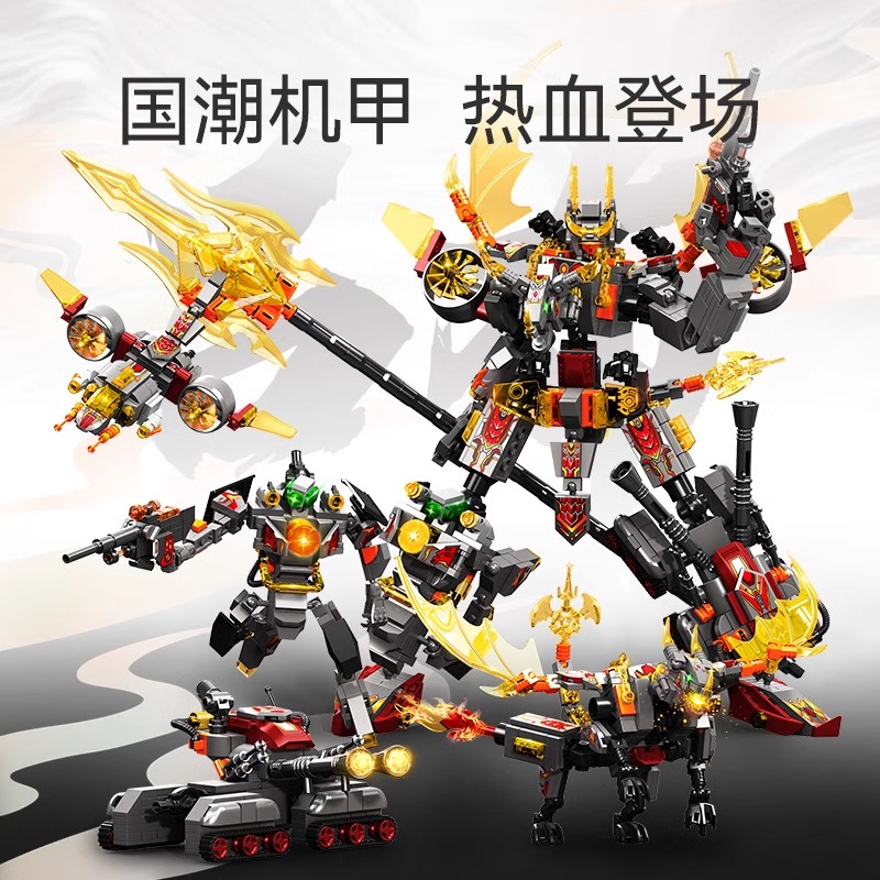 森宝积木国潮积木吕布4合1变形机甲模型摆件创意拼装 玩具节日礼物