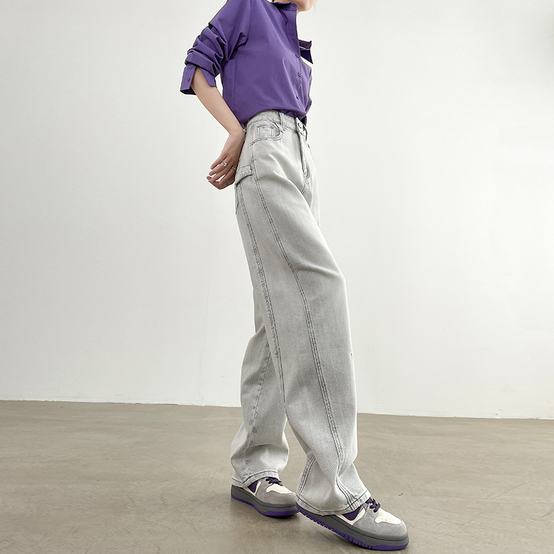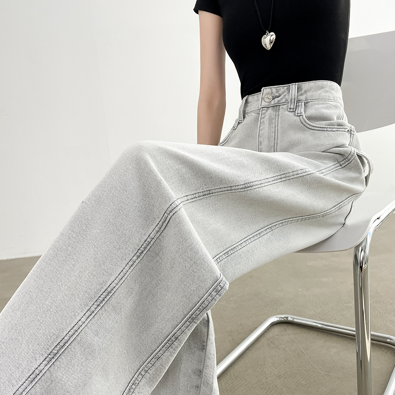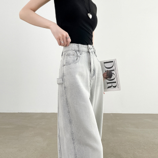 高腰垂感直筒镰刀裤 新款 子 女夏季 灰白色莱赛尔天丝弯刀阔腿牛仔裤
