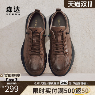 森达板鞋 ZYC21CM4 男户外潮流运动风休闲真皮耐磨一脚蹬厚底增高鞋
