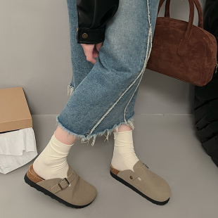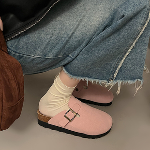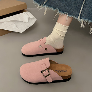 外穿半拖鞋 三喜软木日系博肯秋季 厚底增高包头拖女2025夏季 勃肯鞋