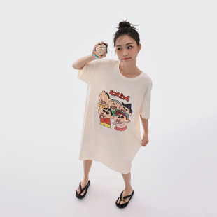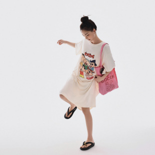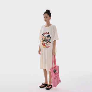 连衣裙休闲卡通睡衣女士家居服2025新款 中长款 纯棉短袖 睡裙女夏季