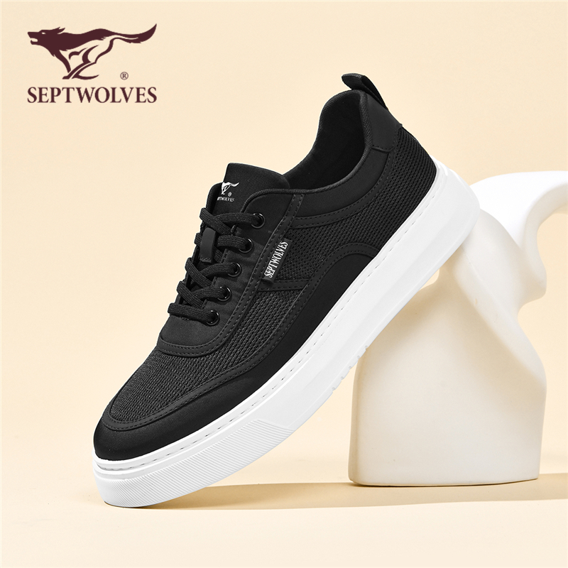 男秋季 户外小众潮流男鞋 新款 帆布潮鞋 百搭 休闲男士 七匹狼黑色板鞋