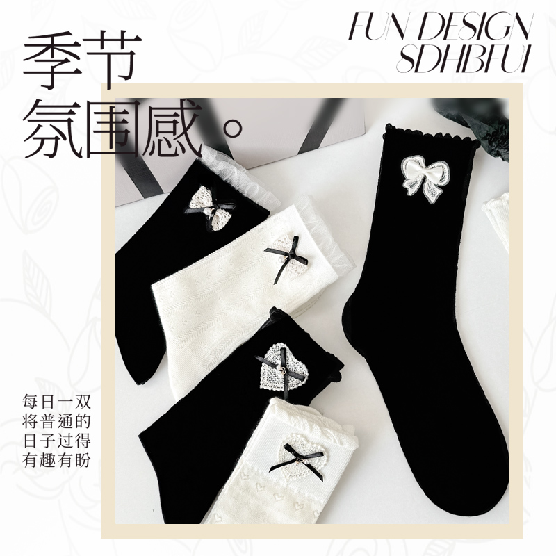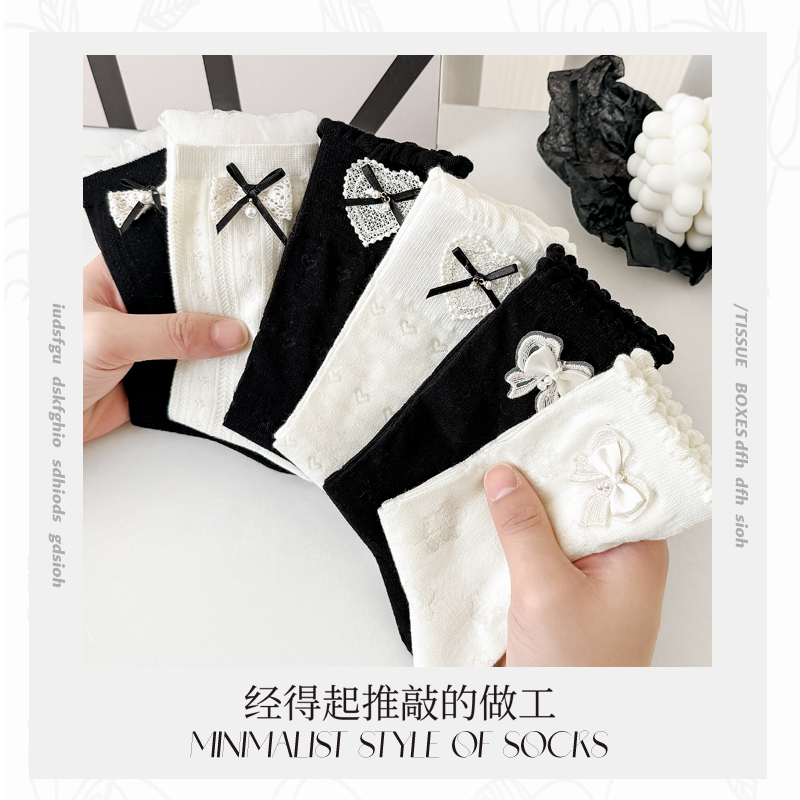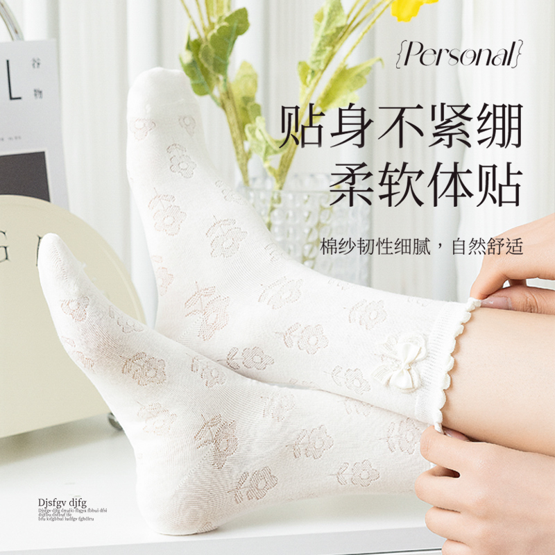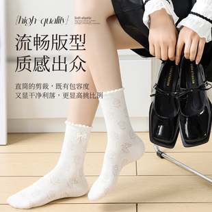 网眼透气无骨中筒堆堆袜配玛丽珍鞋 蝴蝶结袜子女士蕾丝边夏季 薄款