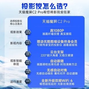 天猫魔屏C2Pro智能投影仪家用云台家庭影院超高清可投天花板便携卧室送酷喵设备终身会员 政府补贴立减15%