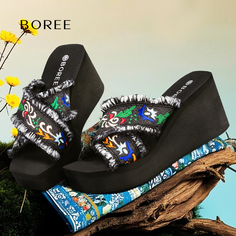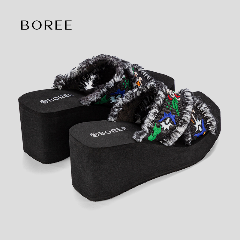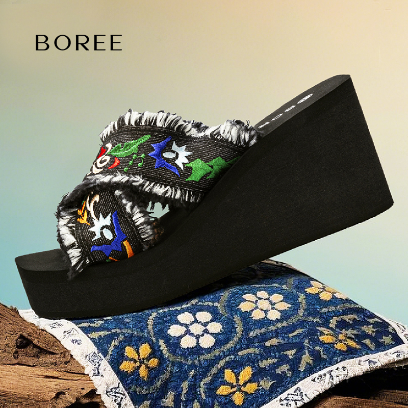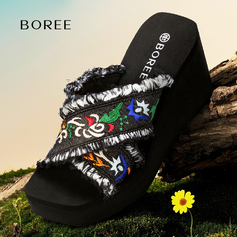 高跟厚底小个子增高拖鞋 宝人编织凉拖鞋 沙滩鞋 夏季 女外穿2025新款