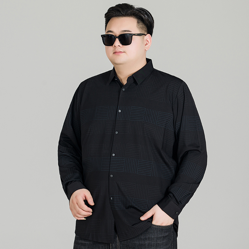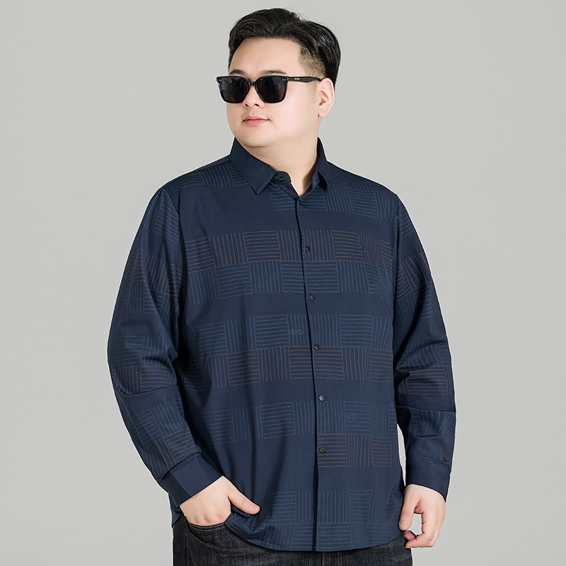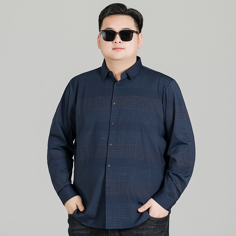格子长袖 男士 衬衫 弹力免烫胖子加肥加大码 秋季 宽松衬衣打底衫 新款