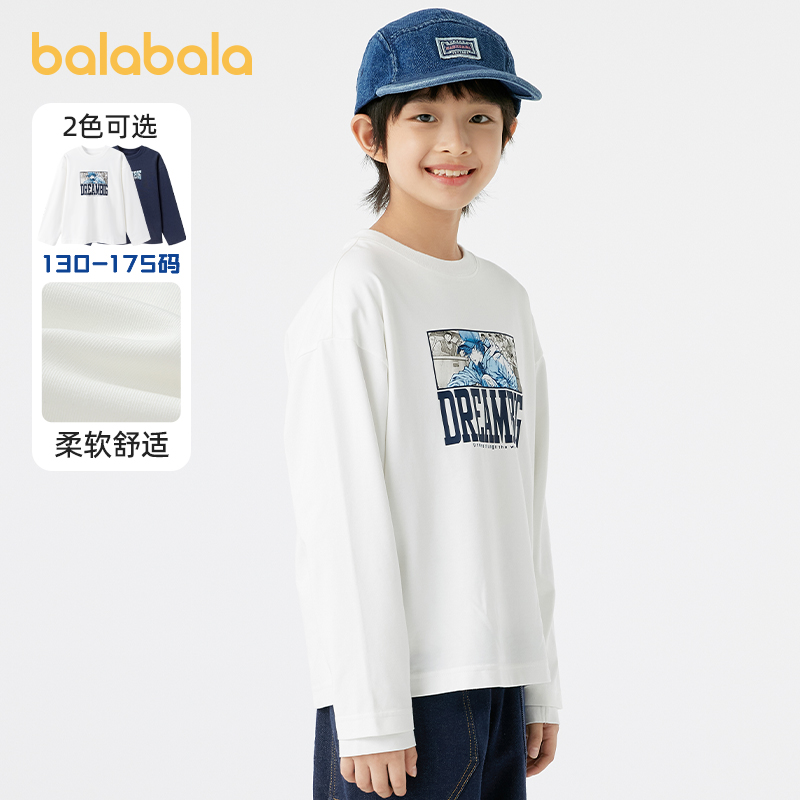 童装 巴拉巴拉男童长袖 新款 2025秋季 潮5 t恤大童白色上衣儿童打底衫