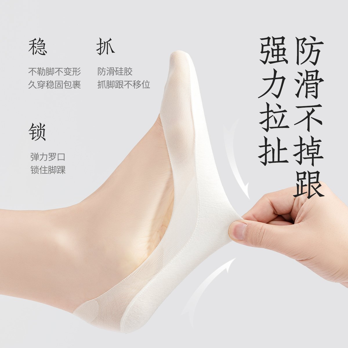 高跟鞋 袜子薄款 袜子 冰丝隐形袜棉制底防滑不掉跟浅口鞋 船袜女夏季