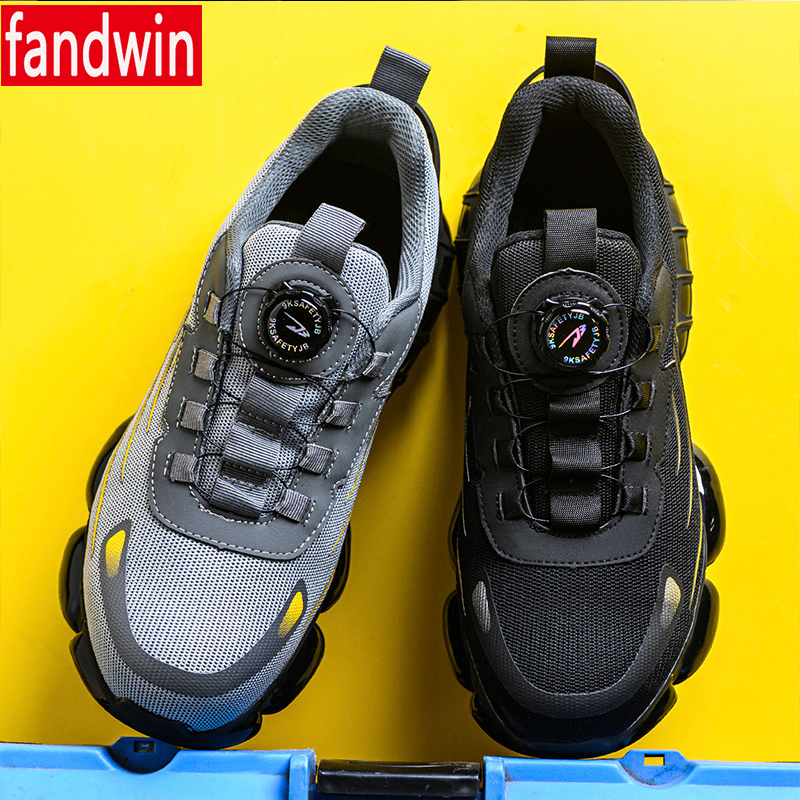 防砸防刺飞织网面透气旋转扣轻便工地安全鞋 男士 劳保鞋 工装 运动鞋