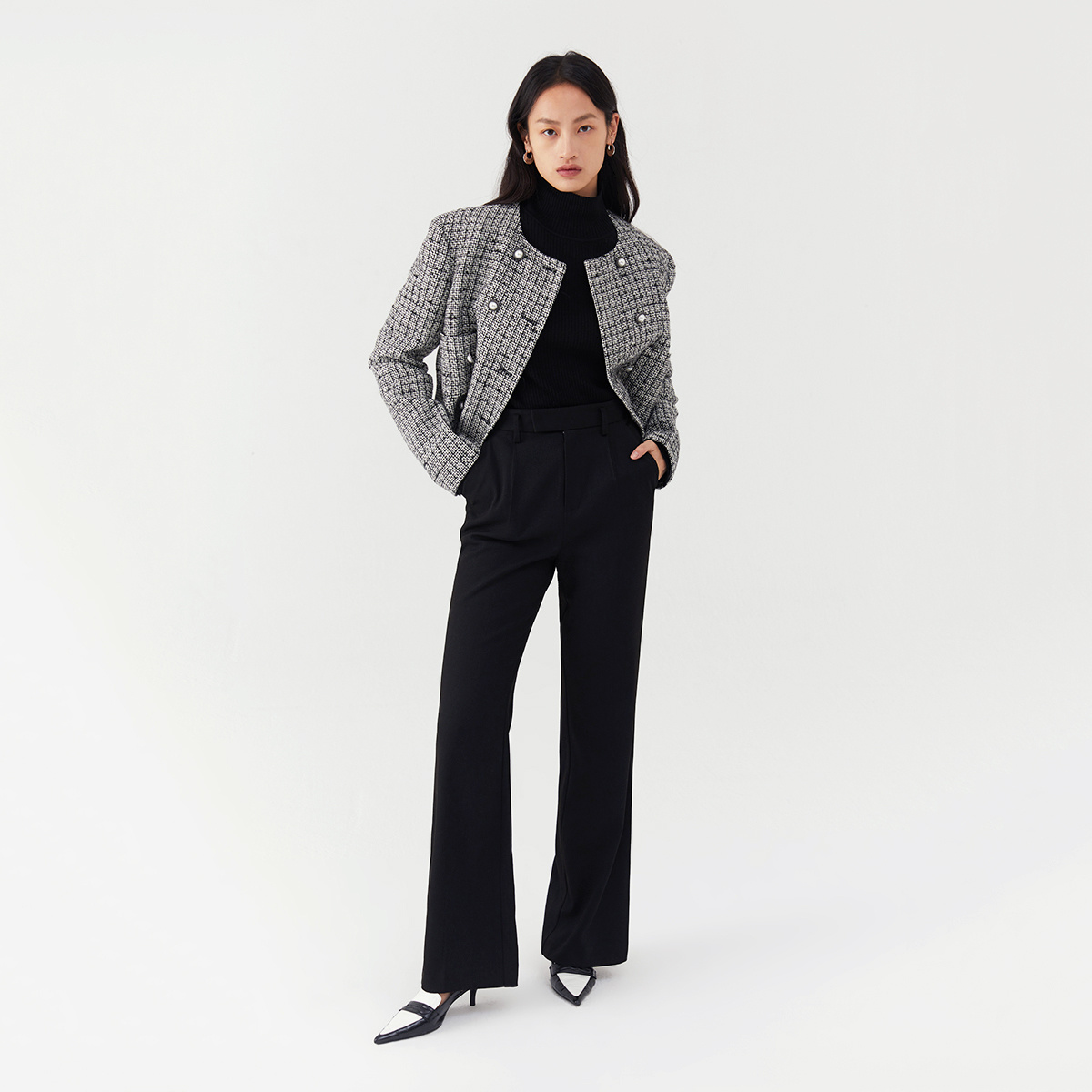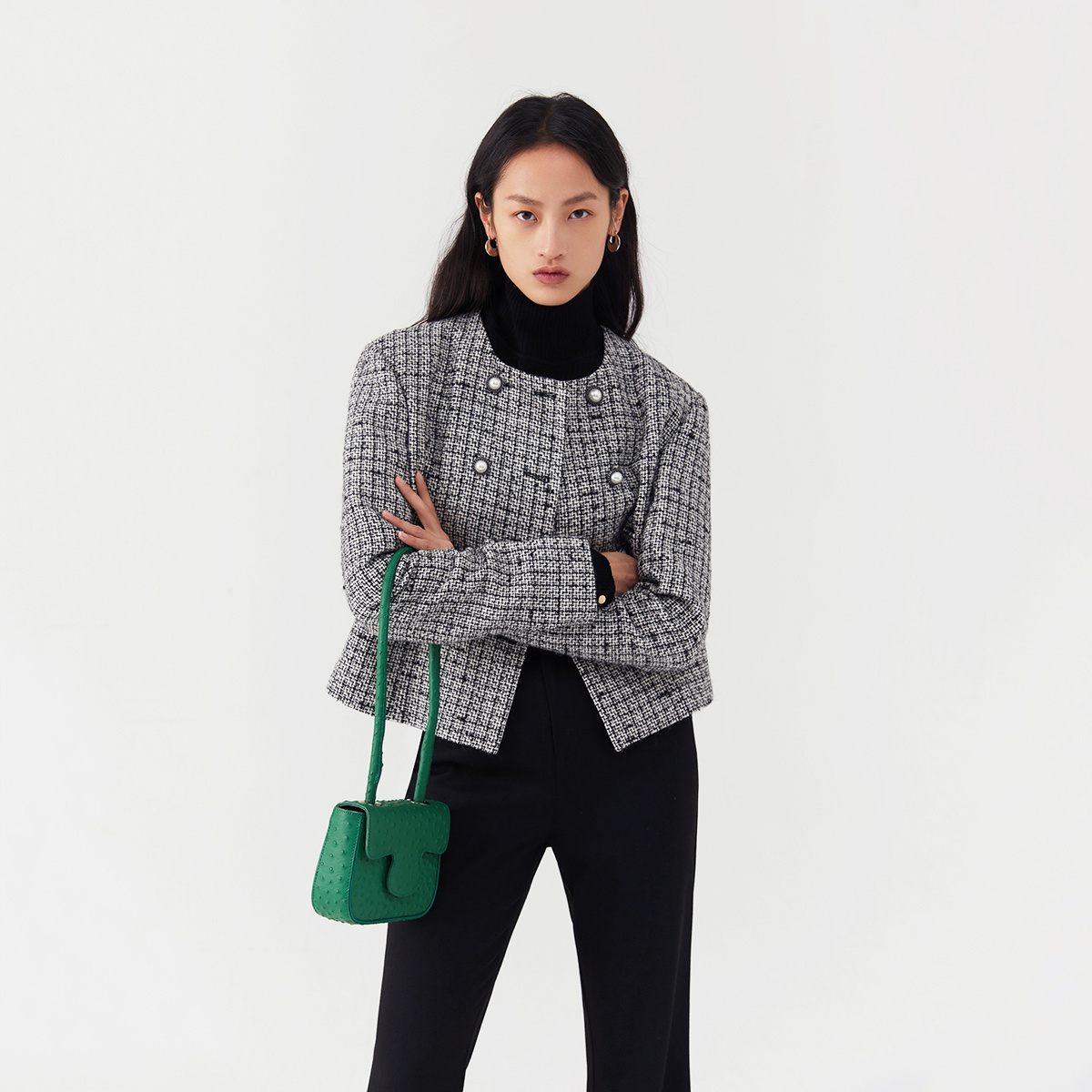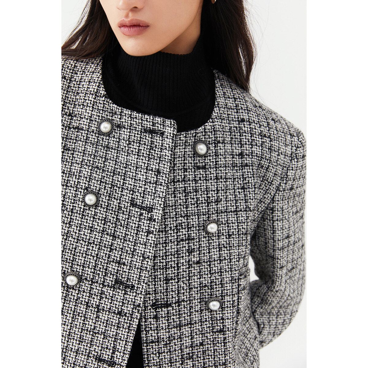 LILY奥莱冬新款 复古小香风双排扣气质圆领短外套 女装