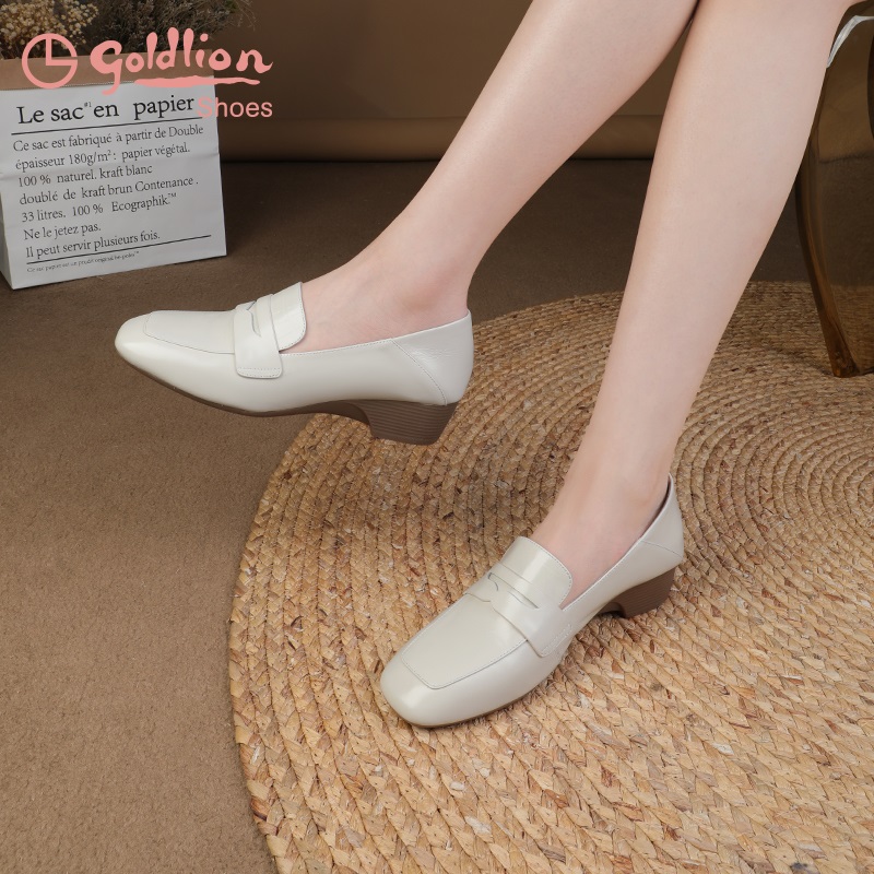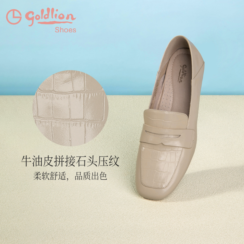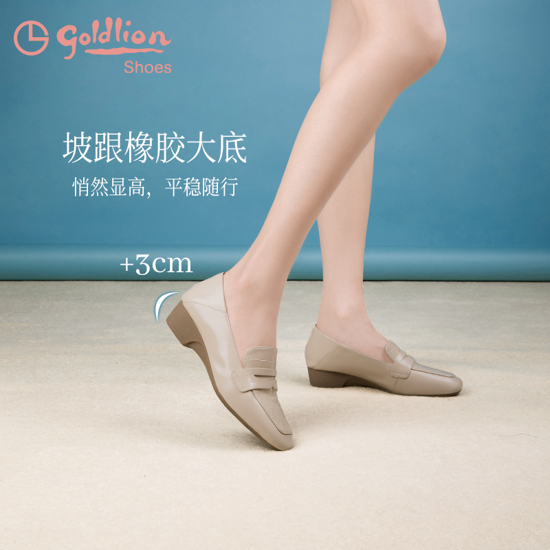 百搭深口方头一脚蹬单鞋 金利来坡跟乐福鞋 真皮时尚 春秋女鞋 女皮鞋