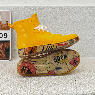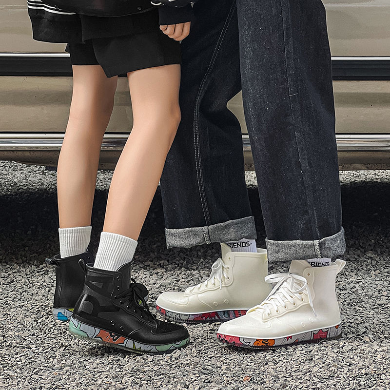 时尚 水鞋 情侣款 女学生漂亮韩版 软底防滑外穿系带雨靴 雨鞋 2023新款
