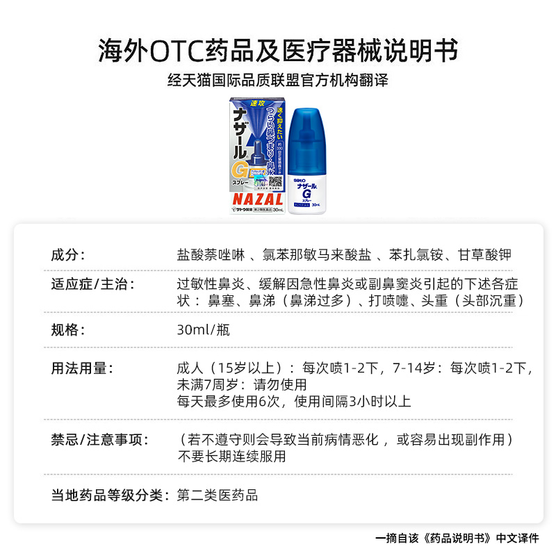 日本sato佐藤鼻炎喷雾喷剂鼻塞鼻痒流鼻涕过敏性鼻喷30ml 自营