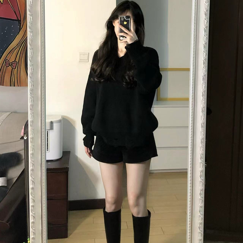 两件套装 秋季 搭配一整套韩系穿搭高级感辣妹炸街洋气宽松毛衣短裤