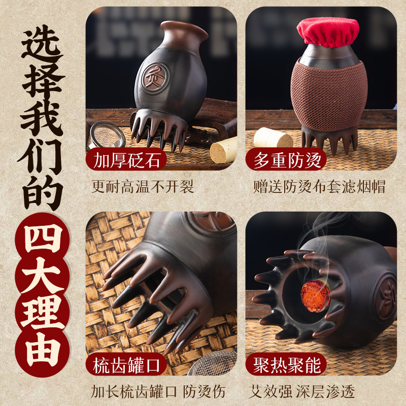 砭石头疗艾灸罐随身灸家用头部艾灸神器温炙梳美容院全身按摩走罐