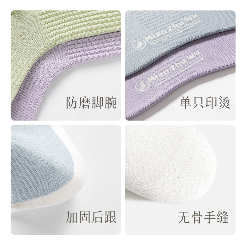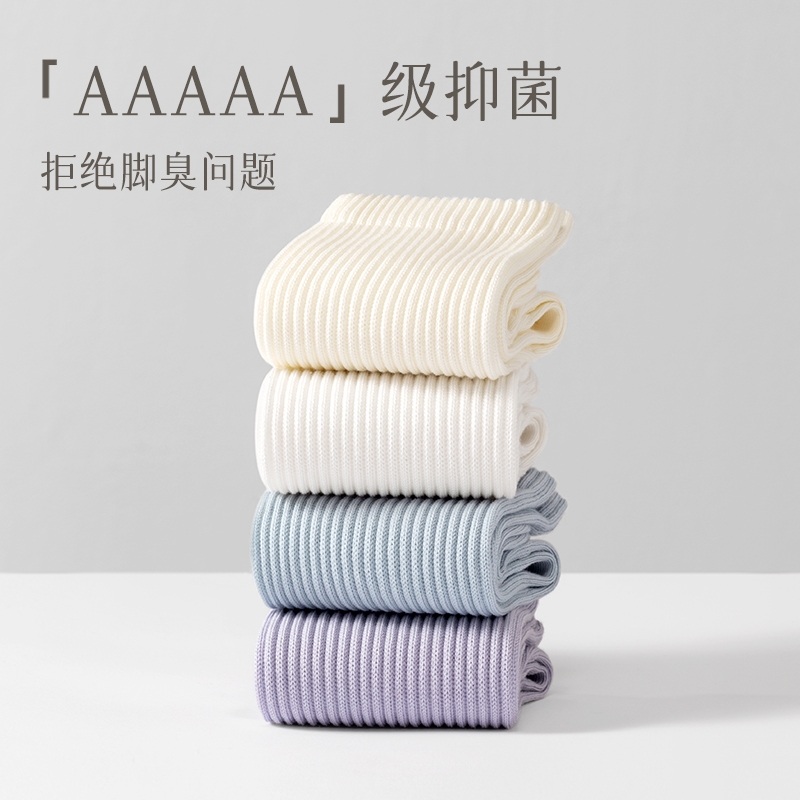 棉竹屋直角袜子女春秋季 抗菌无骨白色女士长袜 中筒袜纯棉100%正品