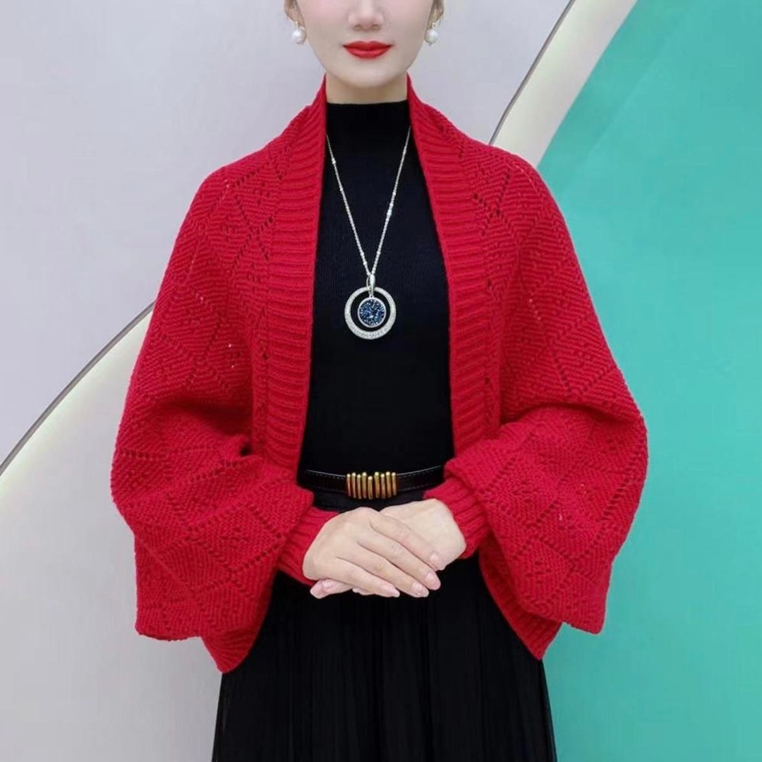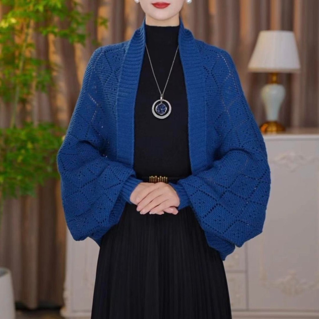 百搭护颈保暖洋气围巾外搭开衫 针织密织方格披肩时尚 2024新款 秋季