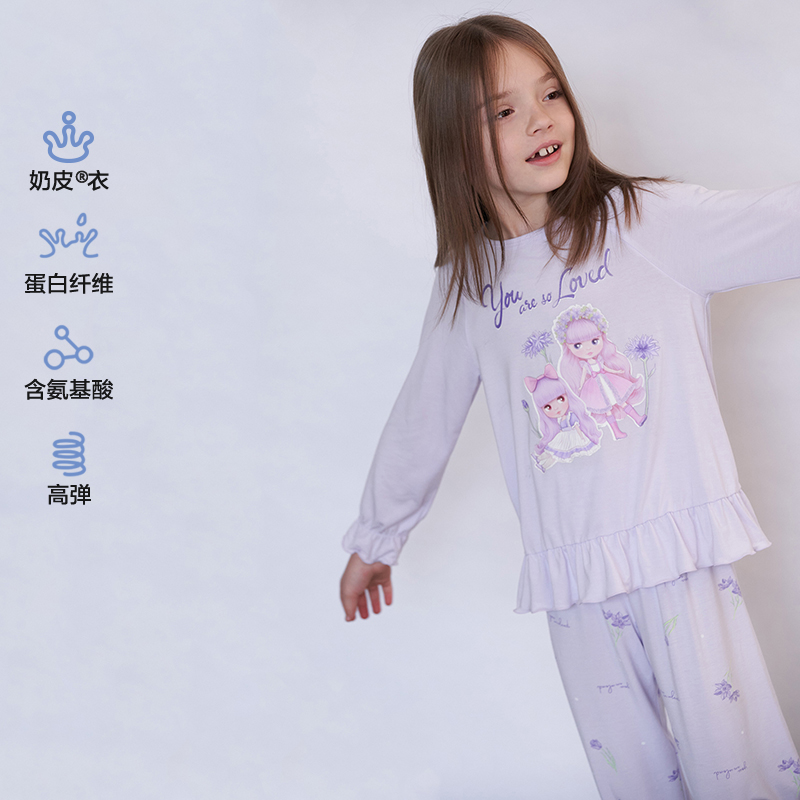 奶皮衣 A类3A抗菌 爱慕儿童女孩春秋长袖 家居服少女可爱睡衣长睡裤