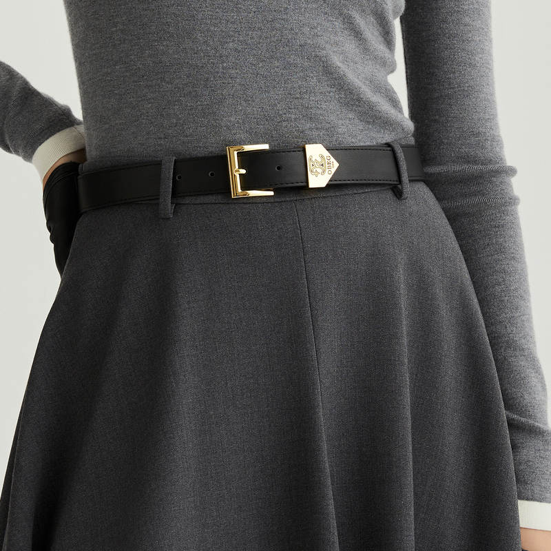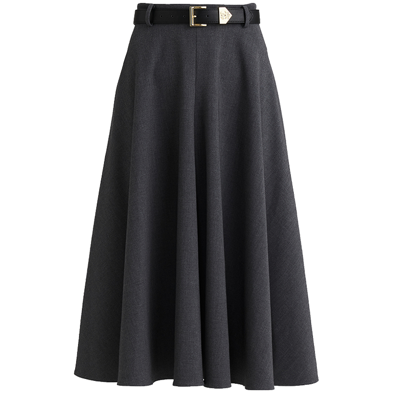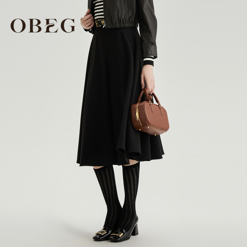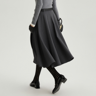 OBEG欧碧倩格雷系灰色半身裙女长款 冬优雅大摆a字裙10464030