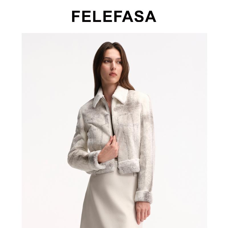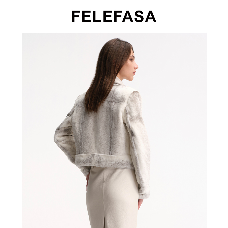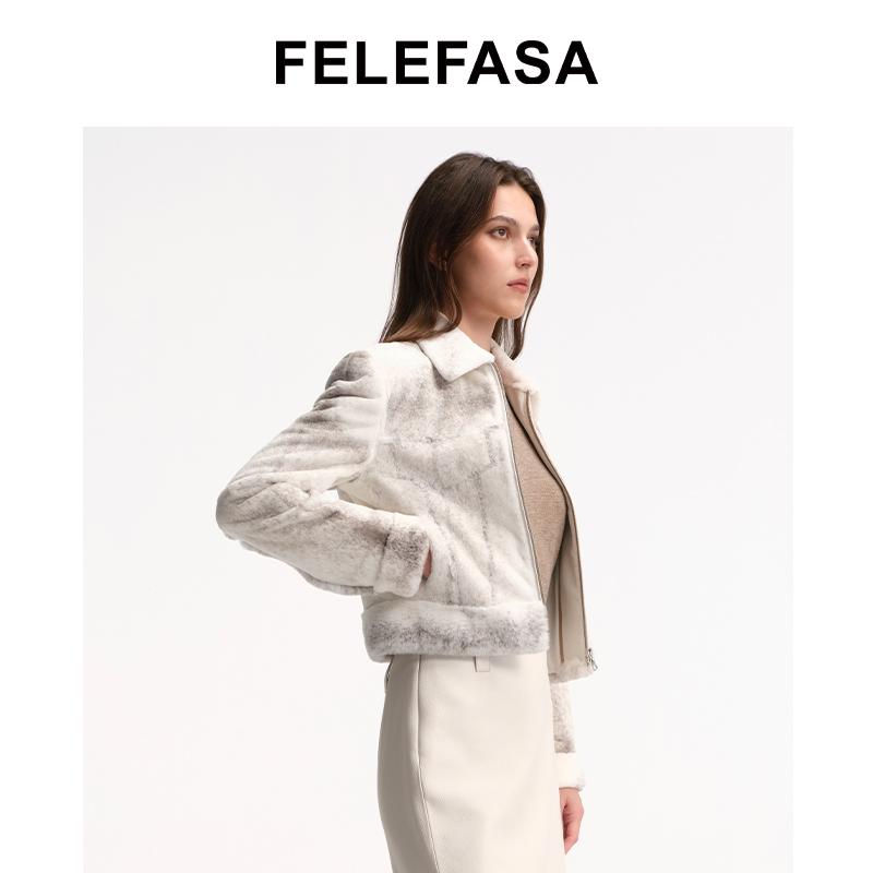 气质时尚 秋水伊人短款 新款 2025年冬季 翻领设计上衣 仿皮草外套女