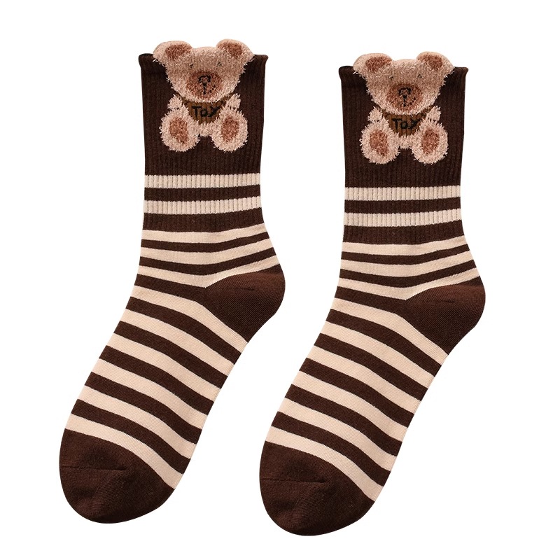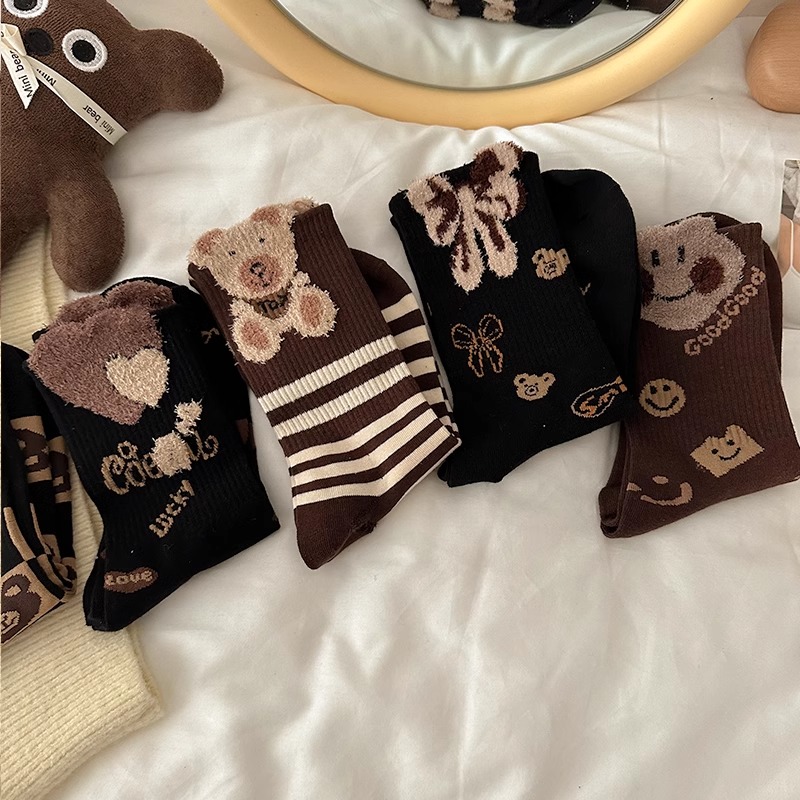 羽毛纱袜子女中筒袜春秋款 可爱小熊网红ins潮女生纯棉百搭长筒袜