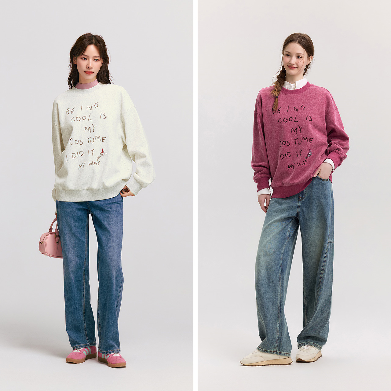 绒衫 棉质舒适大廓形图案圆领长袖 1195824 卫衣秋季 HM女装