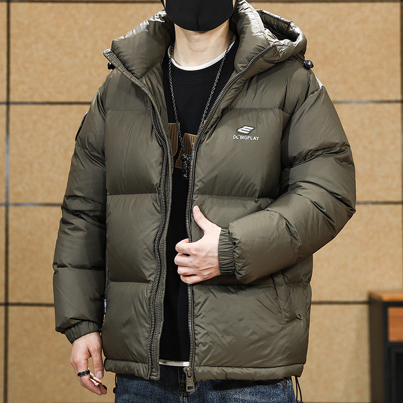 90%绒子含量高充绒灰鸭绒羽绒服男2024秋冬季 保暖连帽面包服外套